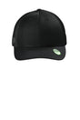 • 100% recycled polyester twill front panels and bill, 100% recycled polyester mid and back mesh panels