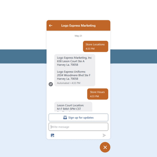 Need help right away? Our Live Support Chat is here for you! Located at the bottom right-hand corner of our website, all you have to do is click the "Live Chat" button to start chatting with one of our friendly and knowledgeable representatives. Whether you have questions about our products, need assistance with an order, or require more information about our services, our team is ready to assist you in real-time. Take advantage of our convenient and immediate support to ensure a seamless experience with Logo Express Marketing.